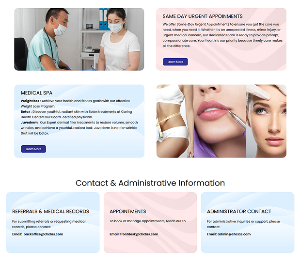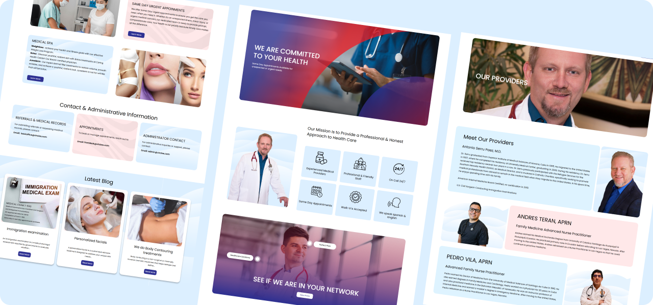 Caring Health Center is a full-service medical and wellness provider offering primary care, family medicine, internal medicine, cosmetic and medical spa services, and immigration medical examinations. The site is designed to provide patients with clear service information, appointment booking, telemedicine access, and medical resource content. With a professional, user-friendly layout and multi-service structure, it reflects the center’s commitment to accessible, patient-focused healthcare in the Las Vegas area.