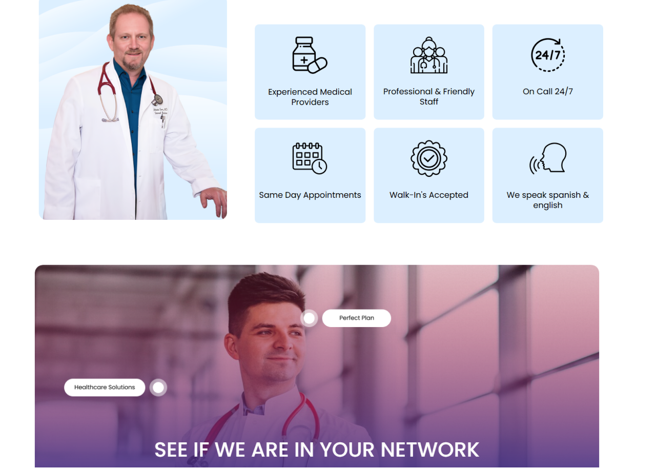 Service pages (primary care, med spa, immigration exams)
