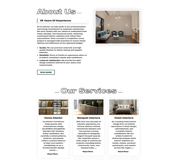 Ira Interior is a creative interior design studio that offers modern, functional, and aesthetically pleasing design solutions for homes and commercial spaces, focusing on personalised style, spatial harmony, and client satisfaction.