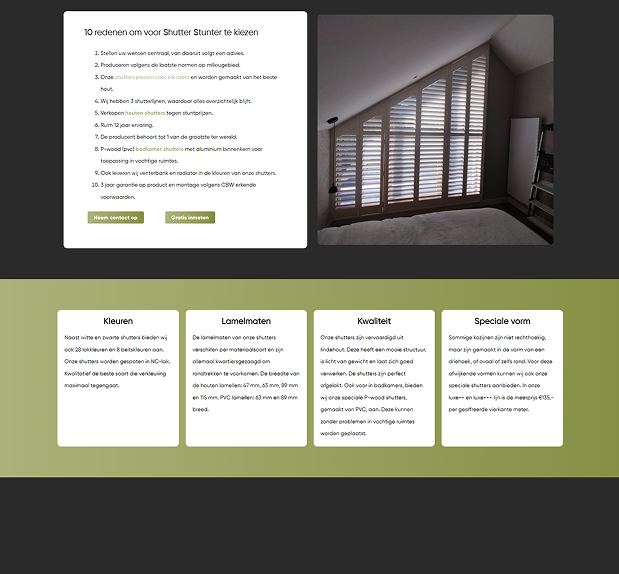 ShutterStunter offers high-quality, stylish, and affordable window shutters designed to complement modern interiors. The website was built to showcase a wide range of shutters with elegant visuals, detailed specifications, and a smooth browsing experience. With a focus on customization, craftsmanship, and customer convenience, the site helps users explore product styles and request quotes effortlessly.