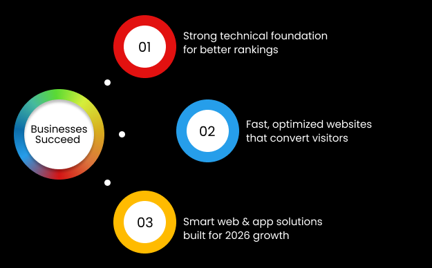 Code Calibre, located in Noida, offers website design services, web development solutions, and mobile app development. Digital marketing success in 2026 begins with a technical foundation that establishes the essential requirements. A slow or poorly designed website will not rank well or convert visitors.