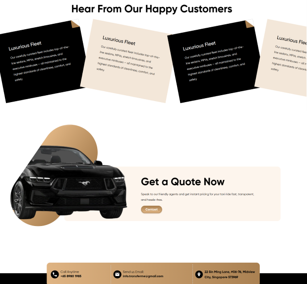 Tranxfer Me is a premium travel and transportation service provider in Singapore specializing in luxury airport transfers, limousine bookings, and tailored chauffeur services for visitors and business travellers. The website highlights service offerings, easy booking options, and professional customer experience.